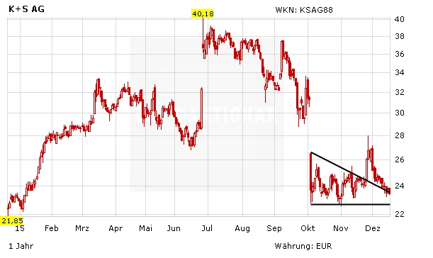 Der K+S-Aktie gibt dies im frühen Handel allerdings keinerlei Rückenwind. Die Anteile verbilligen sich deutlich, was aber natürlich auch an Gewinnmitnahmen nach dem starken Kursanstieg im gestrigen Handel liegen kann.