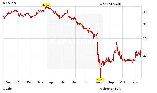 An der Börse wurde die Nachricht über den neuen Investor bei dem größten Kalihersteller der Welt positiv aufgenommen. Die Aktie von K+S war im Sommer nach dem Ende des Lieferkartells von Belaruskali und Uralkali innerhalb weniger Tage um 43 Prozent auf 15,02 Euro gefallen. Der deutsche Hersteller wäre von einem Preisverfall wegen der hohen eigenen Produktionskosten besonders betroffen. Von seinem Tief am 6. August konnte sich das Papier jedoch wieder deutlich erholen und liegt jetzt noch rund ein Fünftel unter dem Niveau, das es vor der Ankündigung von Uralkali Ende Juli hatte.