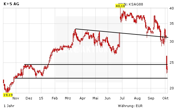 So hat JPMorgan-Analyst Ben Scarlett das Kursziel für die K+S-Aktie nach Rücknahme des Übernahmeangebots von Potash von 33 auf 21 Euro gesenkt und die Einstufung auf "Underweight" belassen. Bereits im August habe er die K+S-Aktie auf "Underweight" abgestuft und geurteilt, der Markt überschätze die Wahrscheinlichkeit einer erfolgreichen Übernahme durch die Kanadier – weshalb er nun, nachdem seine Meinung bestätigt worden ist, das Kursziel gewaltig senkt, bleibt aber offenbar sein Geheimnis....