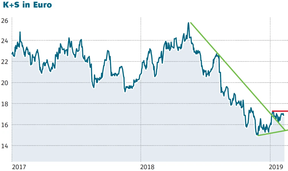 Die Aktie von K+S leidet im frühen Handel unter dem wenig berauschenden Ausblick des Konkurrenten. Dennoch bleibt der MDAX-Titel für mutige Anleger attraktiv. Voraussichtlich bessere Produktionsbedingungen und eine anhaltend positive Entwicklung der wichtigen kanadischen Bethune-Mine könnten die Aktie 2019 beflügeln. Der Stopp sollte bei 14,10 Euro belassen werden. Auch bei Nutrien können die Anteisleigner weiterhin an Bord bleiben (Stopp: 37,00 Euro).