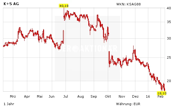 So hat Bernstein-Analyst Jonas Oxgaard im Rahmen seiner jüngsten Branchenstudie die Einstufung für die Anteilscheine von K+S auf "Outperform" belassen. Das Kursziel wurde sogar mit 30 Euro bestätigt, was mehr als 60 Prozent über dem aktuellen Kursniveau liegt. Der DAX-Konzern sollte seiner Ansicht nach weiterhin von einem schwachen Euro profitieren. Zudem hält er ein weiteres Übernahmeangebot des kanadischen Rivalen Potash nach wie vor für möglich.