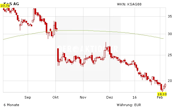Das Analysehaus Independent Research bleibt trotz der Erholungsbewegung pessimistisch. Analyst Bernhard Weininger hat das Kursziel für K+S von 20 auf 18 Euro gesenkt und die Einstufung auf „Verkaufen" belassen. Da sich bei den Konkurrenten die negativen Nachrichten über eine schwächelnde Nachfrage und Absatzprobleme mehrten, rechne er mit einem insgesamt niedrigeren Preisniveau für Düngemittel, schrieb der Experte. Er habe seine Gewinnschätzungen für den deutschen Salz- und Kalihersteller bis 2017 gesenkt.
