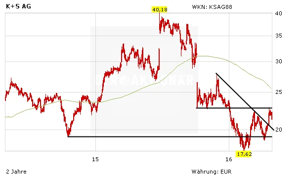 Aufgrund der mittel- bis langfristig guten Perspektiven können mutige Anleger bei der Aktie von K+S nach wie vor an Bord bleiben. Die Position beim mitunter sehr volatilen MDAX-Titel sollte mit einem Stoppkurs bei 17,50 Euro abgesichert werden.