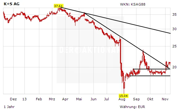 Vor diesem Hintergrund sieht Klein weiterhin das Risiko einer Kapitalerhöhung, auch wenn K+S eine solche Maßnahme ausschließt. Für 2013 bis 2015 dürfte zudem keine Dividende gezahlt werden, um die Mittel in das Legacy-Projekt freizusetzen. Gleichzeitig erwartet Klein ein Kostensenkungsprogramm, das seiner Einschätzung zufolge bei der Vorlage der Zahlen für das dritte Quartal angekündigt werden dürfte.
