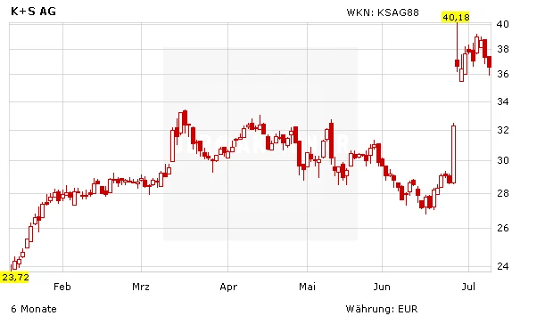 Trotz der Unterstützung der Politik sowie anderer Hürden dürfte Potash weiterhin versuchen, den deutschen Konkurrenten zu schlucken. Die Chancen dafür, dass die Kanadier noch einmal etwas auf die bisher gebotenen 41 Euro aufschlagen, stehen relativ gut. Anleger sollten daher bei K+S investiert bleiben. Der Stoppkurs sollte bei 34,00 Euro belassen werden.