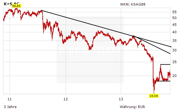 In der Tat ist die Visibilität mit Blick auf den Kalimarkt weiterhin höchst nebulös. Niemand vermag derzeit zu sagen, wohin die Reise geht. Hat der Kalipreis seinen Boden gefunden? Kommt es wirklich zu einer Neuauflage des Kartells zwischen Belaruskali und Uralkali? Wie entwickelt sich die Nachfragesituation. Speziell für K+S stellt sich zudem die Frage: Was wird aus dem Legacy-Projekt in Kanada? Doch aus charttechnischer Sicht deutet vieles auf einen Angriff auf das Zwischenhoch bei 23,70 Euro hin. Investierte Anleger bleiben an Bord. Bei einem Rutsch unter die 18,00-Euro-Marke sollte jedoch die Reißleine gezogen werden.