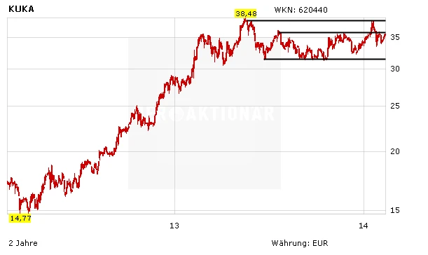 Die Zahlen für das abgelaufene Geschäftsjahr dürften keine negativen Überraschungen beinhalten. Entscheidend ist der Ausblick. Kann KUKA-Vorstand Reuter die Investoren überzeugen, dass Roboter- und Anlagenbauer auch im laufenden Jahr weiter auf dem Wachstumskurs bleibt, dürfte die MDAX-Aktie ihre mehrmonatige Seitwärtsbewegung beenden und Kurs auf die 40-Euro-Marke nehmen. Ein Stopp bei 31 Euro sichert ab.