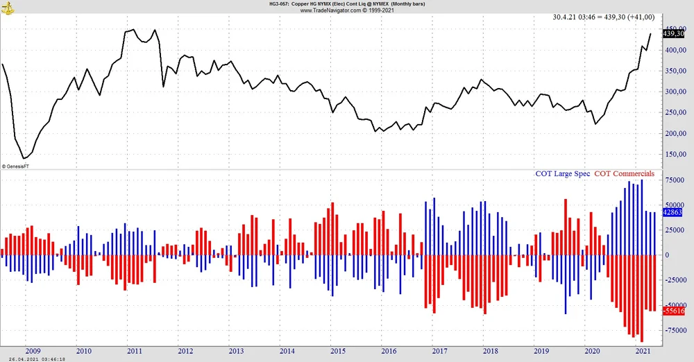Gelingt der Sprung über die 440 US-Cent -Marke ist mit Anschlusskäufen zu rechnen. Der Kupfer Markt ist aktuell technisch zwar stark überkauft, das Momentum ist aber nicht zu unterschätzen.