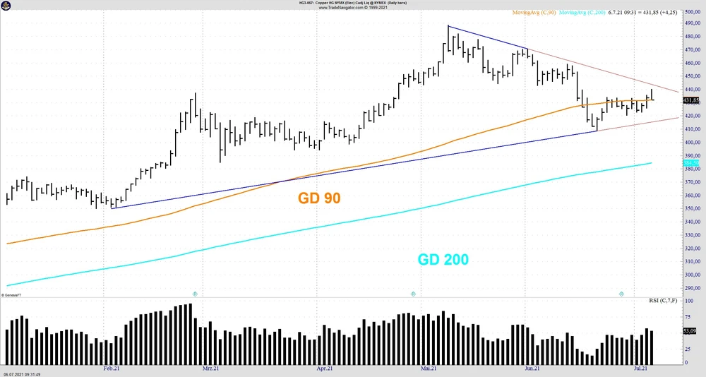 Auch beim Kupfer-Future rechnet der Rohstoff-Investor mit erhöhter Volatilität. Die Erholung der Weltwirtschaft und die zunehmende Inflation sprechen eindeutig für weiter steigende Kurse.