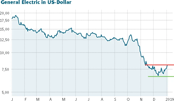 Nach dem Horrorjahr 2018 hat General Electric einen starken Auftakt in das neue Jahr hingelegt. Die Industrieikone hat die Indizes klar outperformt und über sechs Prozent zugelegt. Zwischenzeitlich stand sogar ein fast zweistelliges Kursplus zu Buche. Anleger setzen ihre Hoffnung auf die angekündigte Umstrukturierung des Konzerns.