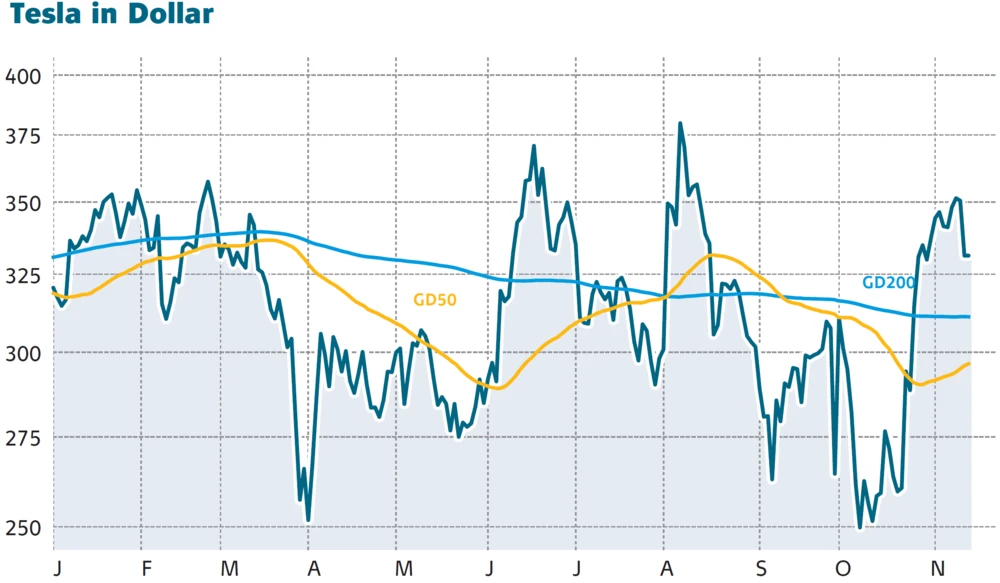 Die Aktie des E-Mobilitätsvorreiters konnte nach den Q3-Zahlen Ende Oktober den kurzfristigen Abwärtstrend stoppen und hat erneut den Widerstand bei 350 Dollar getestet. Wie auch in den zwölf Monaten zuvor konnte die Marke allerdings nicht nachhaltig überwunden werden. Gestern gab die Aktie in einem schwachen Marktumfeld um fünf Prozent nach, konnte sich aber über den wichtigen Durchschnittslinien halten. DER AKTIONÄR rät weiterhin an der Seitenlinie abzuwarten.