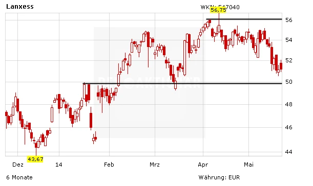 DER AKTIONÄR ist weiterhin optimistisch für die Lanxess-Aktie. Konzernchef Matthias Zachert arbeitet mit Hochdruck daran, den in Schieflage gekommenen Konzern wieder auf Kurs zu bringen. Investierte Anleger bleiben dabei und sichern ihre Position mit einem Stopp bei 46 Euro ab.