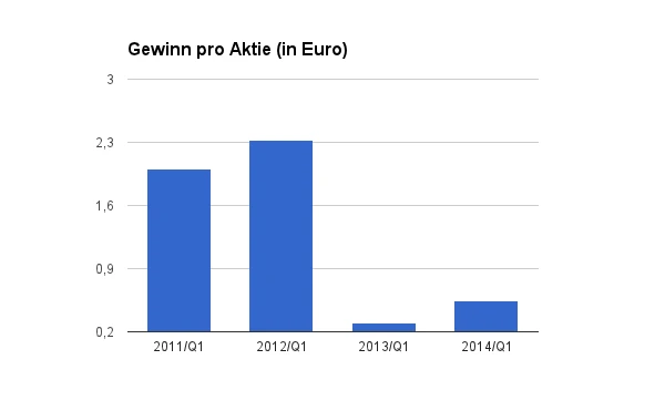 Das Konzernergebnis stagnierte bei 25 Millionen Euro. Das operative Ergebnis zog dagegen an. Der Gewinn vor Zinsen, Steuern, Abschreibungen und Sondereinflüssen (EBITDA) ist um 17,8 Prozent auf 205 Millionen Euro gestiegen. Der Gewinn je Aktie kletterte um 80 Prozent auf 0,54 Euro.