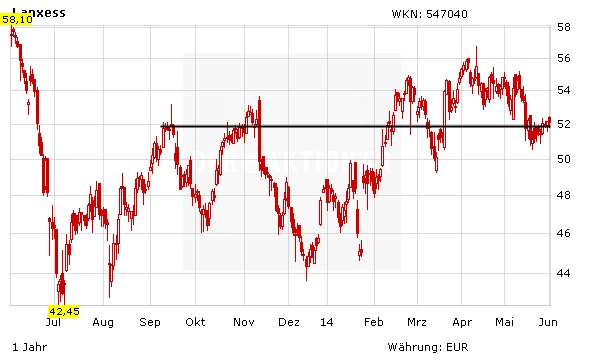 Lanxess war im vergangenen Jahr wegen eines schwachen Autogeschäfts und sinkender Kautschukpreise in Schieflage geraten. Mit Zachert am Steuer arbeitet der Konzern derzeit am Turnaround. "Die kommenden zwei bis drei Jahre werden steinig". Aus dem Umbau werde Lanxess aber gestärkt hervorgehen, so Zachert auf der Hauptversammlung in der vergangen Woche. Investierte Anleger bleiben dabei und sichern ihre Position mit einem Stopp bei 46 Euro ab.