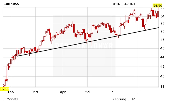 DER AKTIONÄR hatte zuletzt auf das Überraschungspotenzial bei Lanxess hingewiesen. Das Kursziel von 70 Euro wird damit immer greifbarer, denn die Aktie hat mit 56,50 Euro ein neues Jahreshoch markiert.