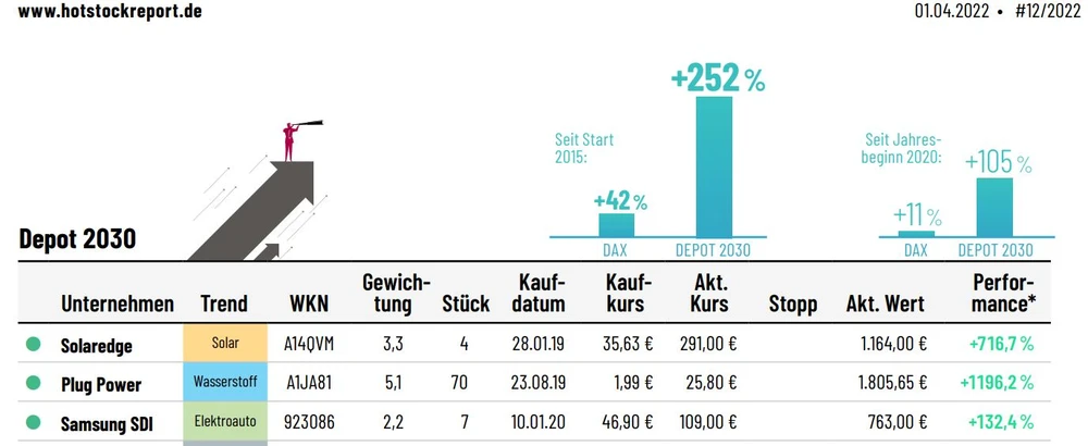 Wir haben zwei andere Solaraktien gekauft – einen Projektierer mit TFA-Signal und den größten Händler für Solarmodule ins Depot 2030. Einfach hier freischalten und ab sofort frühzeitig alle Transaktionen per SMS und Mail erhalten.