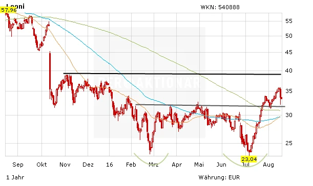 Grundsätzlich ist DER AKTIONÄR der Ansicht, dass es Leoni derzeit im „Angebot“ gibt. Einem Umsatz von 4,4 Milliarden Euro steht eine Börsenbewertung von knapp einer Milliarde entgegen.Inwieweit nach diesen Vorgängen nun die Jahresprognose von Leoni erneut angepasst wird, muss abgewartet werden. Anleger halten sich an den in Ausgabe 31/2016 angegebenen Stoppkurs von 26,50 Euro.