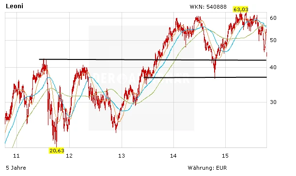 Die Aktie steht am Dienstag stark unter Druck. Sogar unter die Marke von 40 Euro ist das Papier gerutscht. Der Vertrauensverlust ist enorm, allen voran weil Leoni in der Vergangenheit immer wieder betont hat, die sicherlich ambitionierten Jahresziele zu erreichen! Eine stärkere Unterstützung wartet erst im Bereich von 36,55 Euro auf die Aktie.