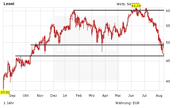Die Leoni-Aktie kam nach der Veröffentlichung der Zahlen auch in der Vergangenheit häufig unter Druck. Langfristig bleibt der Konzern allerdings stark aufgestellt. Zudem scheint der Unterstützungsbereich zwischen 45 und 48 Euro zu halten. Die aktuelle Kursschwäche sollten Anleger zum Einstieg nutzen.