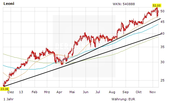 Mitte der Woche musste die Leoni-Aktie einen herben Rückschlag einstecken. Die schwachen Zahlen für das dritte Quartal kamen bei den Anlegern nicht gut an. Viele Analysten stuften das Papier von Leoni ab. Dennoch zog das Papier in den folgenden Tagen bereits wieder an und eroberte die Marke von 50 Euro zurück. Woher komme diese Relative Stärke?