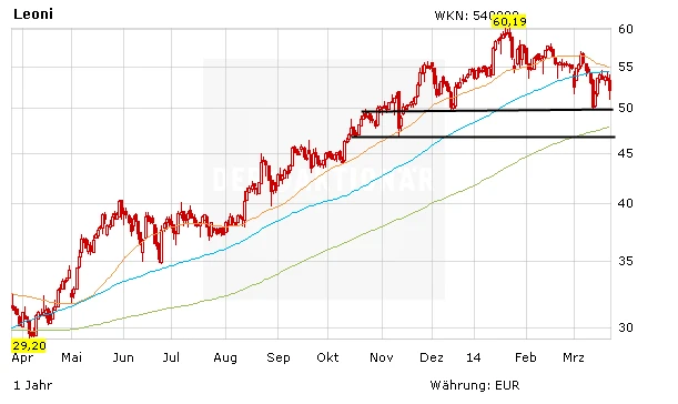 Der Autozulieferer Leoni wird am Dienstag um 10 Uhr die Geschäftszahlen für das abgelaufene Jahr bekanntgeben. Nach vorläufigen Angaben erwirtschafte der Hersteller von Kabelbäumen für die Autoindustrie im vergangenen Jahr einen Gewinn vor Zinsen und Steuern (Ebit) von 163 Millionen Euro. Das ursprüngliche Ziel von 170 Millionen Euro verfehlte das Unternehmen. Grund dafür seien unerwartete Sondereffekte im vierten Quartal. So habe Leoni Rückstellungen für eine Altlastensanierung an einem deutschen Werk bilden müssen. An einem anderen Standort seien Restrukturierungskosten angefallen, mit denen der Vorstand erst 2014 gerechnet habe. Der Umsatz kletterte mit 3,92 Milliarden Euro auf Rekordhöhe.
