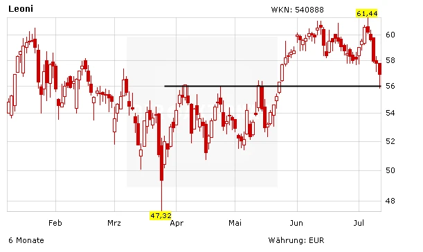 Auch DER AKTIONÄR ist weiter optimistisch, was die Entwicklung der Leoni-Aktie angeht. Das Unternehmen liefert für die Creme de la creme der Automobilbranche Bordnetzsysteme. Bis 2025 sollen sich Umsatz und Gewinn verdoppeln. Die jüngste Korrektur an den Aktienmärkten ist allerdings auch an Leoni nicht spurlos vorüber gegangen. Im Bereich von 56 Euro ist das Papier aber auf eine gute Unterstützung gestoßen. Kann diese verteidigt werden, dürfte es relativ rasch wieder in Richtung des Jahreshochs gehen. Anleger sichern ihre Position mit einem Stopp bei 49 Euro nach unten ab.