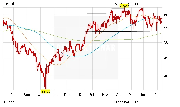 Das Analysehaus Kepler Cheuvreux hat die Einstufung für die Aktien des Autozulieferers Leoni auf "Reduce" mit einem Kursziel von 48 Euro belassen. Ohnehin sind die Märkte derzeit angeschlagen. Dennoch: Die Aktie von Leoni hält sich wacker in der Bandbreite zwischen 54,50 und 60 Euro. Das Unternehmen hat gute Wachstumschancen. DER AKTIONÄR bleibt bei seiner Empfehlung, die Aktie weiter zu halten. Bricht die Aktie über das alte Hoch bei 63,03 Euro aus, sollte das Papier durchstarten. Kursziel: 75 Euro.