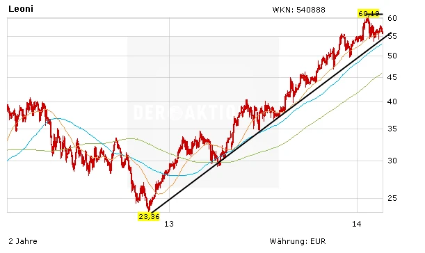 Wie bereits in den letzten Wochen erwähnt: Rückschläge bei der Aktie stellen immer wieder gute Einstiegsmöglichkeiten dar. Die Wachstummstory von Leoni wird im laufenden Jahr fahrt aufnehmen. Ziel ist ein Umsatz von 5,0 Milliarden Euro im Jahr 2016. Zum Vergleich: 2013 waren es 3,9 Milliarden Euro.