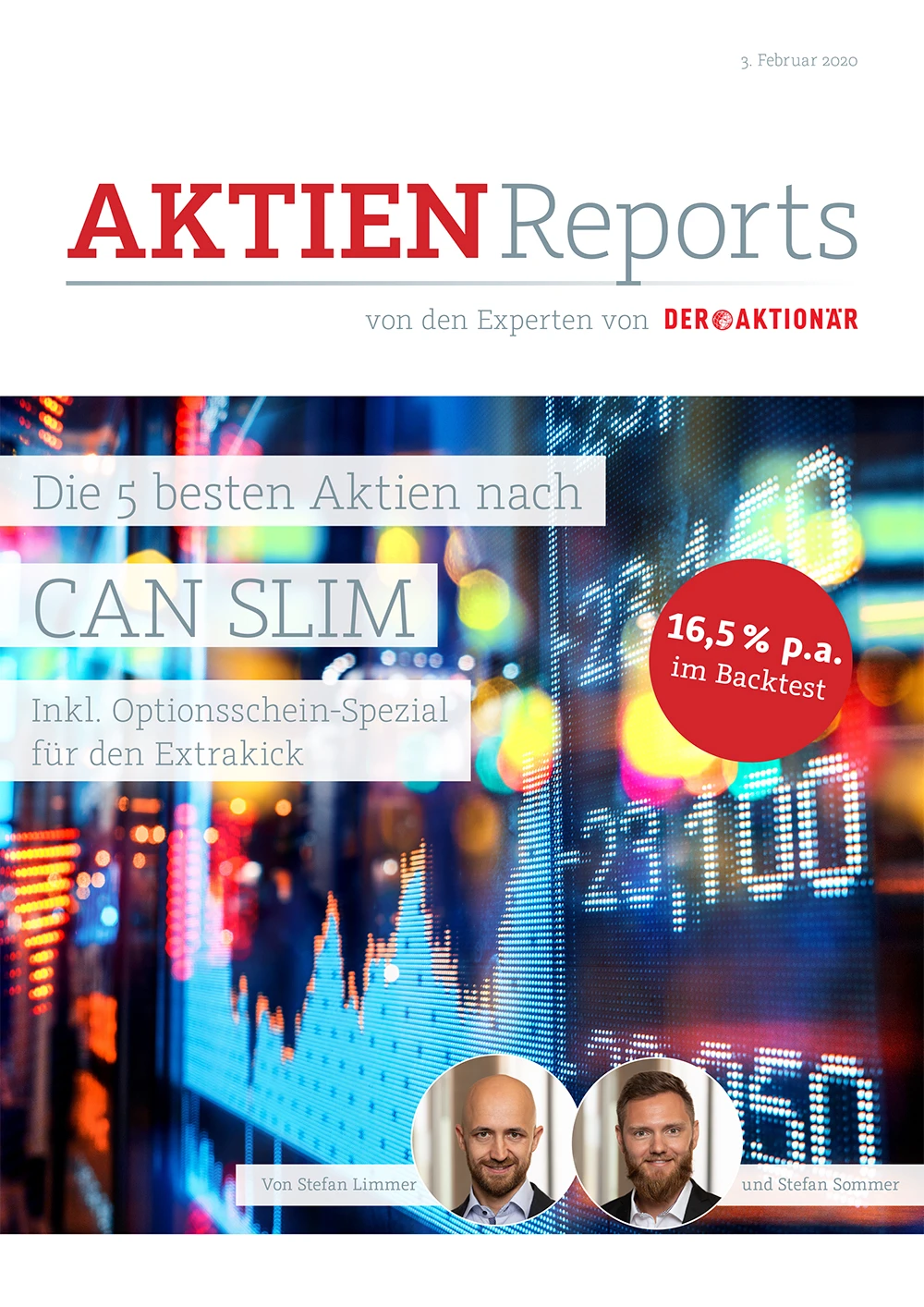 Das Team der Technischen Analyse von DER AKTIONÄR stellt die Strategie ausführlich in seinem Spezialreport vor. Zusätzlich haben die Experten alle Werte aus dem S&P 500 nach der CAN SLIM Methode getestet und 5 Aktien mit extrem hohem Kurspotenzial identifiziert, die als klare Kaufkandidaten zu bewerten sind.
