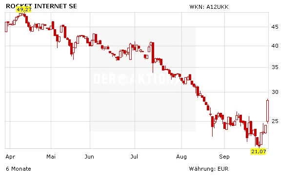 Auslöser für das Halbjahresminus von 45,9 Millionen Euro seien unter anderem "Aufwendungen für Leistungen an Arbeitnehmer" gewesen, teilte Rocket mit. Im Vorjahreszeitraum hatte die Gesellschaft noch 91,9 Millionen Euro Gewinn ausgewiesen. Der Umsatz stieg leicht auf 71,3 Millionen Euro. Bei Rocket werden allerdings nur die Beteiligungen an den einzelnen jungen Unternehmen verwaltet, das eigentliche Geschäft spielt sich dort ab. Die Start-up-Fabrik spezialisiert sich unter anderem auf Internet-Handel und das Geschäft mit Essens-Zustellung, dafür werden Online-Anbieter in verschiedenen Ländern aufgesetzt.