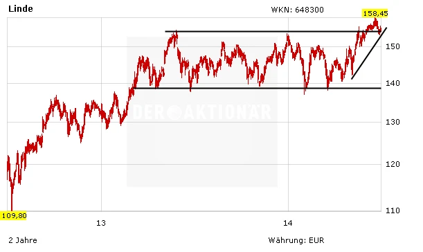 Der Linde-Aktie ist es gelungen, den Ausbruch aus dem Seitwärtstrend zu bestätigen. Der Wert notiert derzeit über der Marke von 155 Euro. Ein positiver Analystenkommentar des US-Analysehauses Bernstein Research könnte nun weiteren Schwung geben, um den Aufwärtstrend fortzuführen.