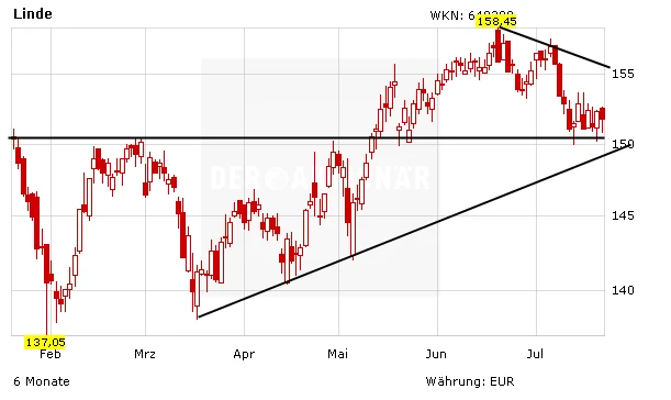 Linde hat zuletzt mit der Meldung, Wasserstofftankstellen in Serie bauen zu wollen, für Impulse gesorgt. Bei der Bekanntgabe der Zahlen in der nächsten Woche wird sich zeigen ob der Konzern die Einschätzungen der Analysten übertreffen kann. Für Langfristanleger bleibt die Aktie angesichts einer Dividendenrendite von zwei Prozent weiterhin ein Basisinvestment. Das Kursziel liegt bei 190 Euro.