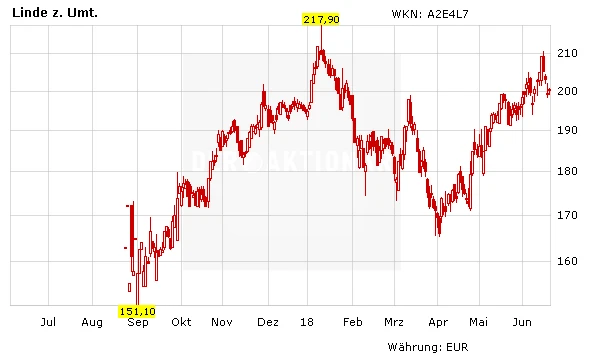 Gelingt die Fusion, dürfte die Linde-Aktie weiter anziehen. Als Weltmarktführer hätte die neue Linde im Industriegasegeschäft, in dem Größe eine wichtige Rolle spielt, eine noch stärkere Position. An den Märkten wird erwartet, dass Linde und Praxair die Auflagen der Kartellwächter erfüllen. Bereits in den letzten Wochen hat die Aktie deutlich angezogen. Anleger setzen weiter auf steigende Kurse.