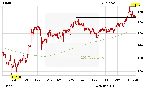Aus wirtschaftlicher Sicht macht die Fusion Sinn. Inzwischen hat sich diese Sicht auch bei den Anlegern durchgesetzt. Die Aktie ist nach der Zustimmung des Linde-Aufsichtsrats im frühen Handel auf ein neues Jahreshoch geklettert. Gelingt der Sprung über den Widerstand bei 180 Euro, rückt auch das Rekordhoch bei 195,55 Euro wieder in den Fokus. Anleger bleiben an Bord.