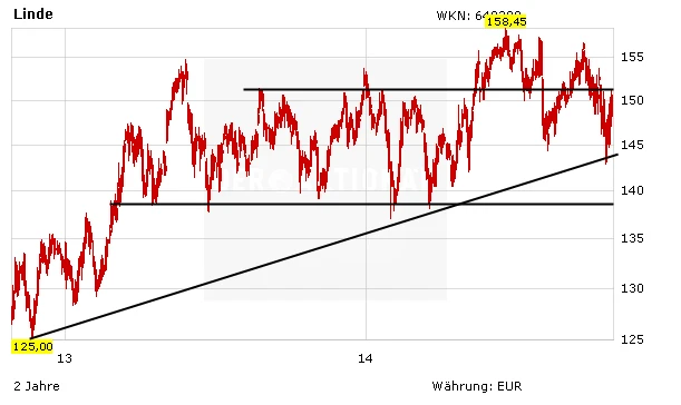 Die Wechselkursbelastungen dürften langsam nachlassen. Der starke Euro hatte Linde zuletzt stark belastet. Der Konzern ist international hervorragend aufgestellt und bleibt ein Basisinvestment für Langfristanleger. Vor einem Neueinstieg sollte aber die Bekanntgabe der Zahlen abgewartet werden. Bereits investierte Anleger bleiben dabei und sichern ihre Position mit einem Stopp bei 137 Euro ab.