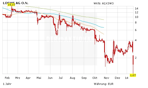 Am Montag rauscht die Aktie der Loewe AG in die Tiefe. Mehr als 50 Prozent verliert das Papier in den ersten Handelsstunden. Bereits am Freitag warnte DER AKTIONÄR vor einem möglichen Absturz. Zwar meldete der Fernsehhersteller Loewe, dass eine Investorengruppe um ehemalige Topmanager von Apple und Bang & Olufsen die Firma kaufen werde. Schade nur, dass die Aktionäre von diesem Deal wohl gar nichts abbekommen werden.