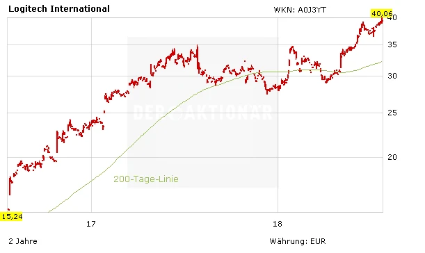 Starke Produkte für Business und Gaming – hier lohnt eine Anlage. DER AKTIONÄR empfiehlt interessierten Anlegern nach dem starken Anstieg der vergangenen Monate an dieser Stelle jedoch nur die Eröffnung einer ersten Logitech-Teilposition. Es gilt die Quartalszahlen in der nächsten Woche abzuwarten.