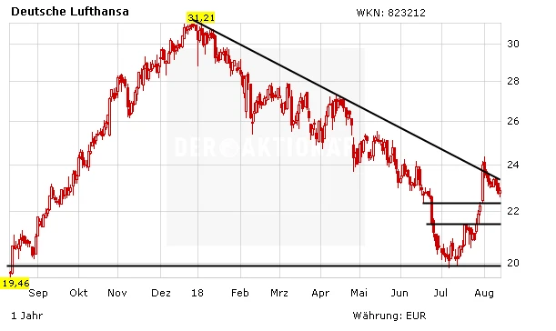 Auch DER AKTIONÄR rät derzeit nur mutigen Anlegern bei der Lufthansa-Aktie, die mit einem KGV von gerade einmal 6 und einem KBV von 1,1 sehr günstig bewertet ist, zum Einstieg. Wer dabei ist, kann investiert bleiben. Der Stopp kann auf 18,50 Euro nachgezogen werden.