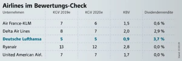 Die Aktie der Lufthansa begibt sich zum Wochenschluss erneut auf Sinkflug. Das Papier verliert 0,3 Prozent auf 19,53 Euro. Damit ist die Aktie ein der nur sechs Werten (neben Deutsche Bank, E.on, RWE, Deutsche Telekom und Wirecard) im DAX, die am heutigen Tag ein negatives Vorzeichen vorzuweisen haben. Im Monatsvergleich ist das Lufthansa-Papier mit minus 12,7 Prozent der zweitschwächste Wert im DAX. Nur Bayer hat sich mit minus 19,9 Prozent noch schlechter entwickelt. Seit dem Allzeithoch vor gut einem Jahr hat die Aktie der Lufthansa sogar mehr als 37 Prozent eingebüßt.