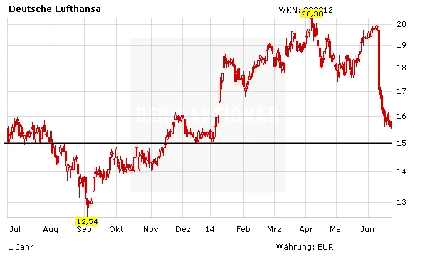 Durch den Kurssturz hat sich die charttechnische Situation der Lufthansa-Aktie massiv eingetrübt. Der nächste Widerstand befindet sich im Bereich der 15-Euro-Marke. Eine technische Gegenbewegung dürfte zwar nicht mehr lange auf sich warten lassen, DER AKTIONÄR rät von der Aktie der Deutschen Lufthansa aber trotzdem vorerst die Finger zu lassen und nicht ins Fallende Messer zu greifen.