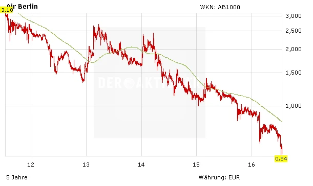 Die Anteile von Air Berlin konnten im Zuge der Meldung deutlich zulegen. DER AKTIONÄR bleibt für beide Aktien dennoch weiterhin eher skeptisch gestimmt. Die Favoriten im Luftfahrtsektor bleiben die in den vergangenen Jahren – und wohl auch in Zukunft – deutlich erfolgreicheren Billigflieger Ryanair und Easyjet.