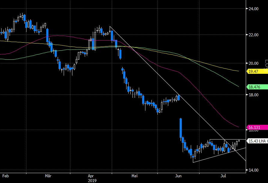 Gefühlt das komplette Jahr über arbeitet die Aktie der Lufthansa an einer Bodenbildung. Das Problem: Sobald es aus charttechnischer Sicht wieder relativ gut aussah, gab es zum Teil massive Störfeuer durch negative Nachrichten. Wiederholt sich vor den Zahlen am 30.7. dieses Schauspiel oder glückt nun endlich das große Comeback?