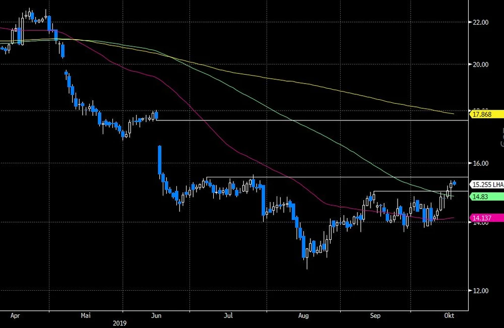 Rein charttechnisch betrachtet wäre es dann wahrscheinlich, dass die Lufthansa-Aktie das aufgerissene Gap bei 17,62 Euro schließen kann.