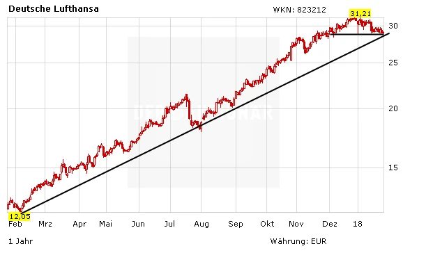Die Lufthansa verfügt über eine sehr solide Bilanz, eine starke Marktposition und über sehr gute Aussichten. Die Aktie ist mit einem 2018er-KGV von 7 immer noch ein absolutes Schnäppchen. Anleger können die aktuelle Konsolidierungsphase zum Einstieg nutzen. Der Stopp sollte bei 23,70 Euro belassen werden.