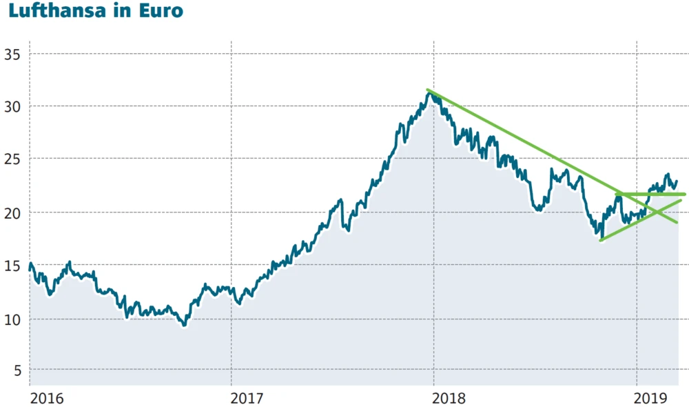 Da die Lufthansa auch in diesem Jahr wohl wieder knapp zwei Milliarden Euro verdienen wird, ergibt sich auch für 2019 ein KGV von gerade einmal 5 (was auch im Branchenvergleich sehr niedrig ist). Damit wäre der DAX-Titel auch ohne Wachstum ein attraktives Investment für langfristig orientierte Anleger. Diese können weiter zugreifen. Der Stopp sollte bei 16,80 Euro belassen werden.