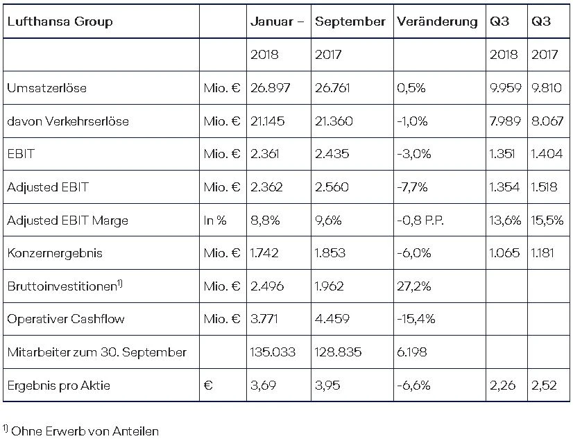Europas größte Airline konnte die Erwartungen nicht erfüllen. Höhere Kosten belasteten das Ergebnis für das dritte Quartal. Immerhin hält die Lufthansa an ihrer Prognose für das Gesamtjahr fest. Doch schon 2019 dürfte das Geschäft belastet werden. Die Kranich-Aktie stürzt am Dienstag-Vormittag ab.