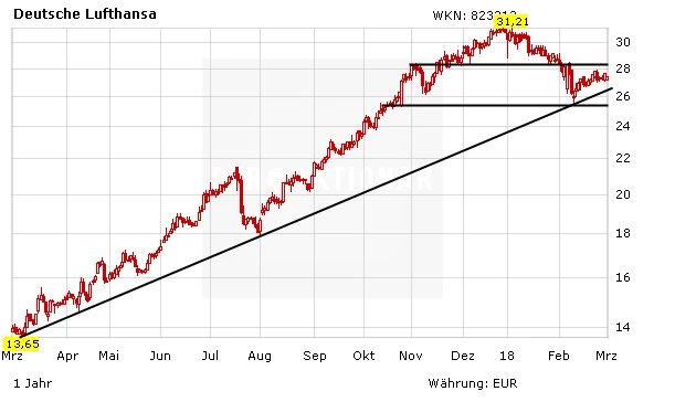 Bei der Lufthansa wäre dies anders. So wird die Kranich-Airline trotz der beeindruckenden Rallye im vergangenen Jahr aktuell lediglich mit dem 6-fachen des für 2018 erwarteten Gewinns bewertet. Auch für das kommende Jahr liegt das KGV bei gerade einmal 6. Das KBV beläuft sich auf 1,3.