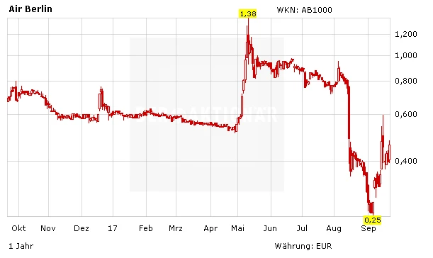 Die Aktie der insolventen Air Berlin legt im Zuge der Entscheidung kräftig zu und notiert aktuell knapp 16 Prozent über dem Vortagesschlusskurs. Doch die Aktie bleibt wertlos und daher ein reines Zockerpapier. Denn die von Lufthansa, Easyjet und Condor gebotenen Summen werden wohl nicht einmal dafür ausreichen, um die horrenden Schulden der Airline zu begleichen. Für die Aktionäre bleibt daher erst recht nichts übrig. Anleger sollten einen weiten Bogen um die Aktie machen.