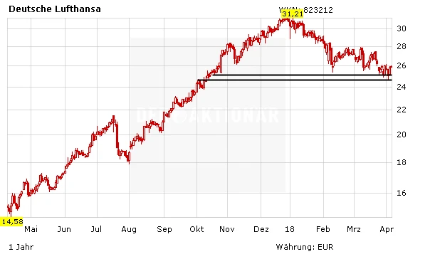 Auch DER AKTIONÄR bleibt für die Lufthansa-Aktie zuversichtlich gestimmt. Die Aussichten bleiben gut und die Bewertung ist im Branchenvergleich nach wie vor günstig. Anleger können zugreifen, der Stopp sollte bei 23,70 Euro platziert werden.
