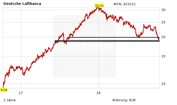 Sollte der Unterstützungsbereich, an dem sich die Lufthansa-Aktie aktuell befindet, nicht halten, droht ein weiterer Abverkauf. Anleger sollten daher den Stoppkurs bei 18,50 Euro im Auge behalten und – auch wenn es weh tut – immer an die wichtigste Börsenregel denken: Verluste begrenzen.